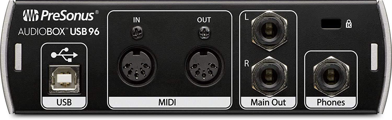 - Mit 2 Combo-Eingängen, 2 symmetrischen TRS-Ausgängen und MIDI I/O liefert die PreSonus AudioBox USB 96 professionelle Aufnahmen. Gain-Regler und Phantomspeisung machen dieses kompakte Interface zu einem kreativen Werkzeug.